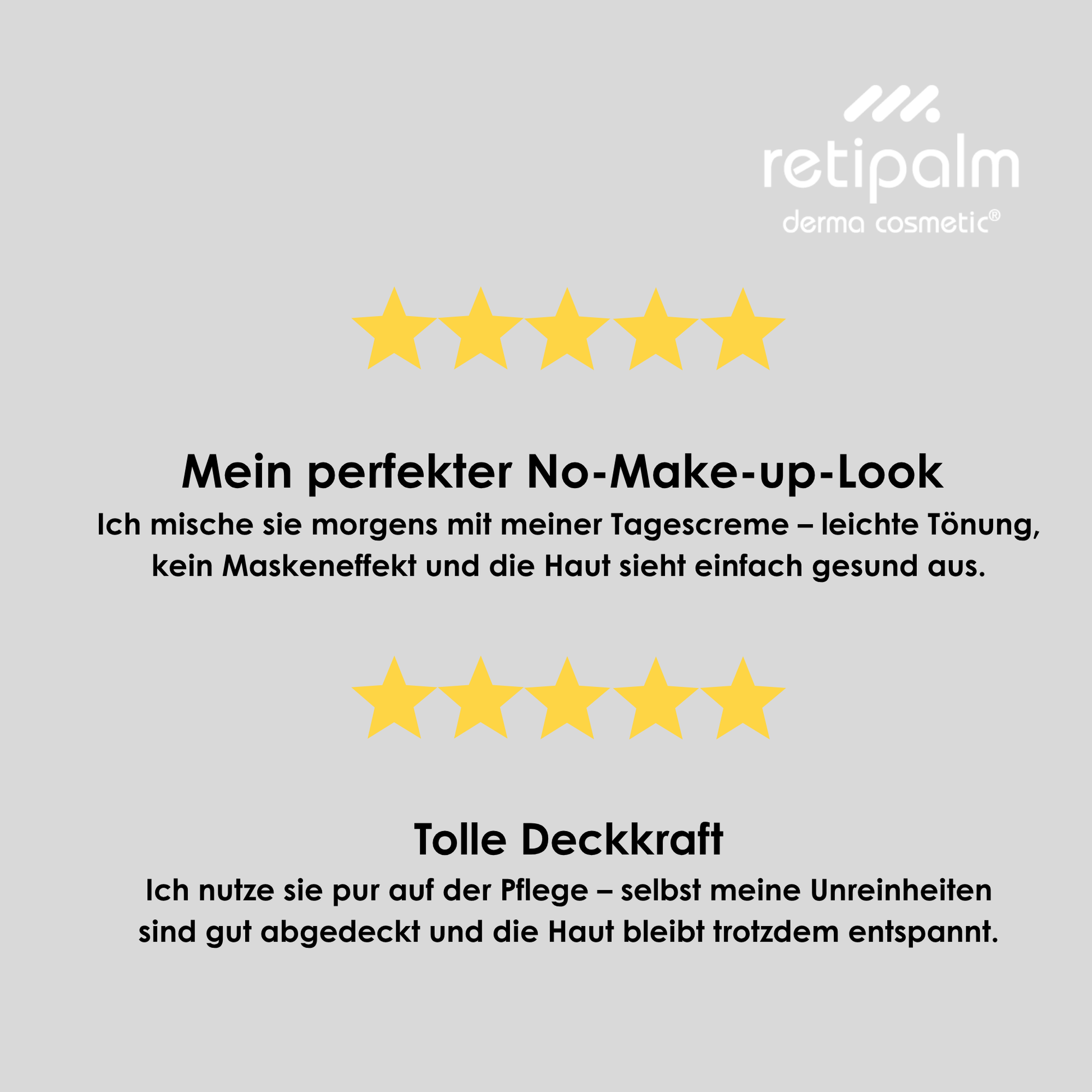 • Ich bin mit den Retipalmprodukten sehr zufrieden. Sie zaubern schon früh ein Lächeln ins Gesicht sobald der Duft vom Vitamin Hydrogel die Haut streichelt und verwöhnt.